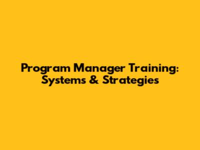 Program Manager Training: Systems & Strategies