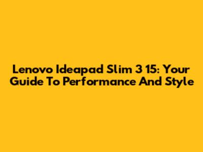 Lenovo Ideapad Slim 3 15: Your Guide To Performance And Style