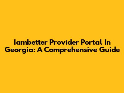 Iambetter Provider Portal In Georgia: A Comprehensive Guide