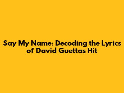 Hey music lovers! Ever found yourself belting out a tune without really knowing what it means? Well, let's dive deep into one of David Guetta's bangers, "Say My Name." This track isn't just a catchy beat; it’s a whole vibe, and understanding the lyrics can make you appreciate it even more. We're going to break down the lyrics, explore the meaning behind them, and uncover what makes this song so unforgettable. So, whether you're a die-hard Guetta fan or just looking for some lyrical insights, buckle up and get ready to decode "Say My Name!"