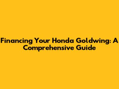 Financing Your Honda Goldwing: A Comprehensive Guide
