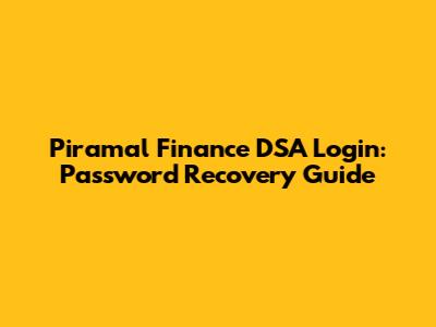 Piramal Finance DSA Login: Password Recovery Guide