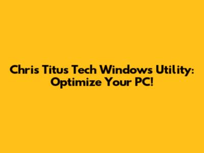 Chris Titus Tech Windows Utility: Optimize Your PC!