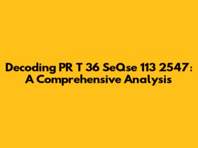 Decoding PR T 36 SeQse 113 2547: A Comprehensive Analysis