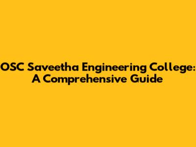 OSC Saveetha Engineering College: A Comprehensive Guide