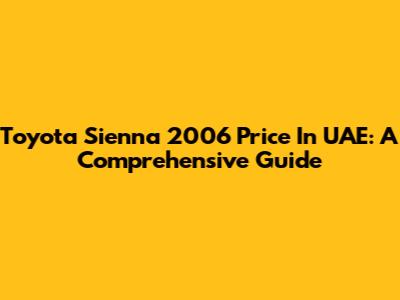 Toyota Sienna 2006 Price In UAE: A Comprehensive Guide