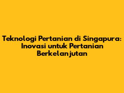 Teknologi Pertanian Di Singapura: Inovasi Untuk Pertanian Berkelanjutan