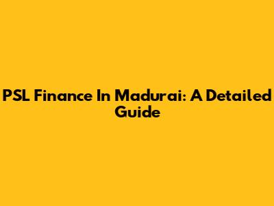 PSL Finance In Madurai: A Detailed Guide