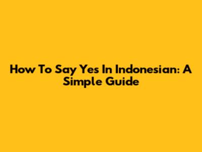 How To Say Yes In Indonesian: A Simple Guide