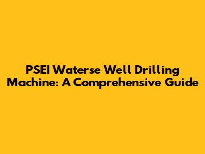 PSEI Waterse Well Drilling Machine: A Comprehensive Guide