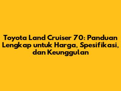 Toyota Land Cruiser 70 adalah legenda hidup di dunia otomotif, dikenal karena ketangguhan, kemampuan off-road yang luar biasa, dan daya tahan yang tak tertandingi. Bagi para penggemar petualangan dan mereka yang membutuhkan kendaraan yang dapat diandalkan di medan berat, Land Cruiser 70 adalah pilihan yang tak tergantikan. Artikel ini akan membahas secara mendalam mengenai harga mobil Toyota Land Cruiser 70, spesifikasi, serta berbagai keunggulan yang membuatnya begitu istimewa.