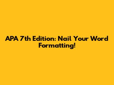APA 7th Edition: Nail Your Word Formatting!