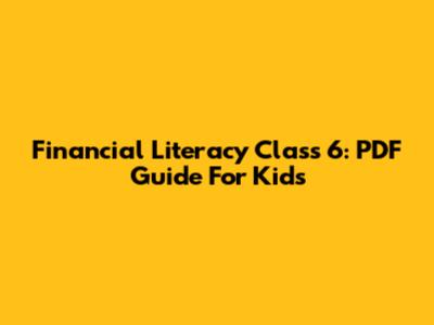Financial Literacy Class 6: PDF Guide For Kids