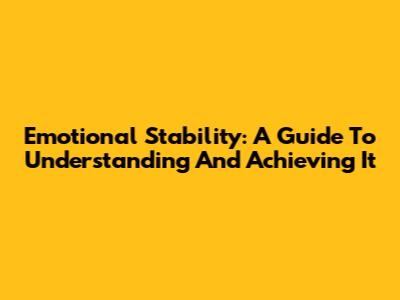 Emotional Stability: A Guide To Understanding And Achieving It