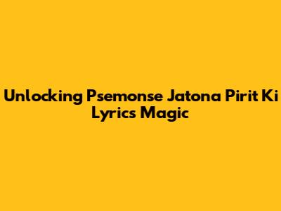 Unlocking Psemonse Jatona Pirit Ki Lyrics' Magic