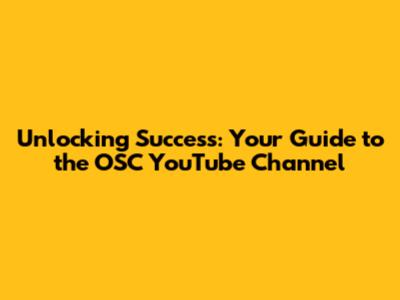 Why the OSC YouTube Channel is a Must-Watch