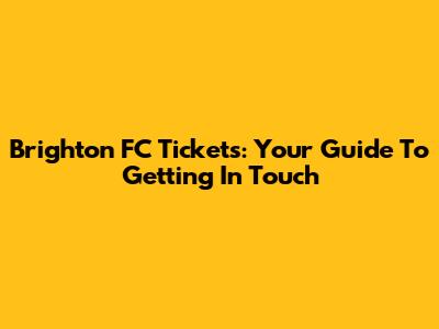 Brighton FC Tickets: Your Guide To Getting In Touch