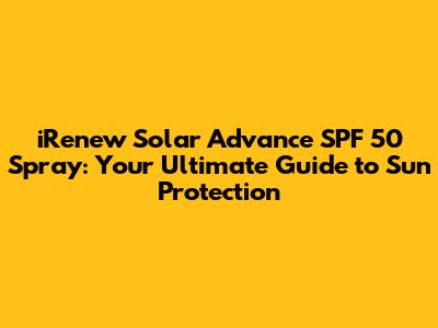 Hey guys! Let's dive into the world of sun protection and talk about a real game-changer: the iRenew Solar Advance SPF 50 Spray. We all know how crucial it is to shield our skin from those harmful UV rays, but let's be honest, finding a sunscreen that's effective, easy to use, and feels good on your skin can be a real struggle. Well, fret no more, because this article is your go-to guide for everything you need to know about the iRenew Solar Advance SPF 50 Spray. We'll explore its benefits, how to use it, and why it might just become your new best friend for all things sun-related. Get ready to soak up the sun (safely, of course!) and discover how this amazing spray can revolutionize your sun care routine.