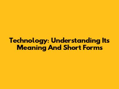 Technology: Understanding Its Meaning And Short Forms