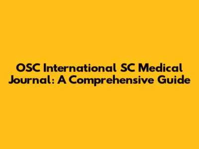 OSC International SC Medical Journal: A Comprehensive Guide