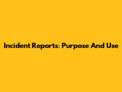 Incident Reports: Purpose And Use