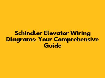 Schindler Elevator Wiring Diagrams: Your Comprehensive Guide