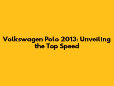 Volkswagen Polo 2013: Unveiling The Top Speed