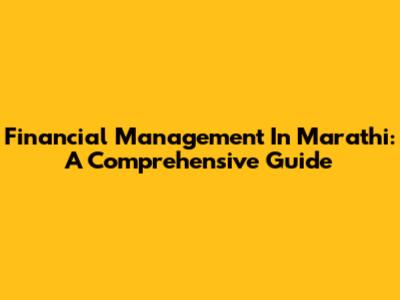 Financial Management In Marathi: A Comprehensive Guide
